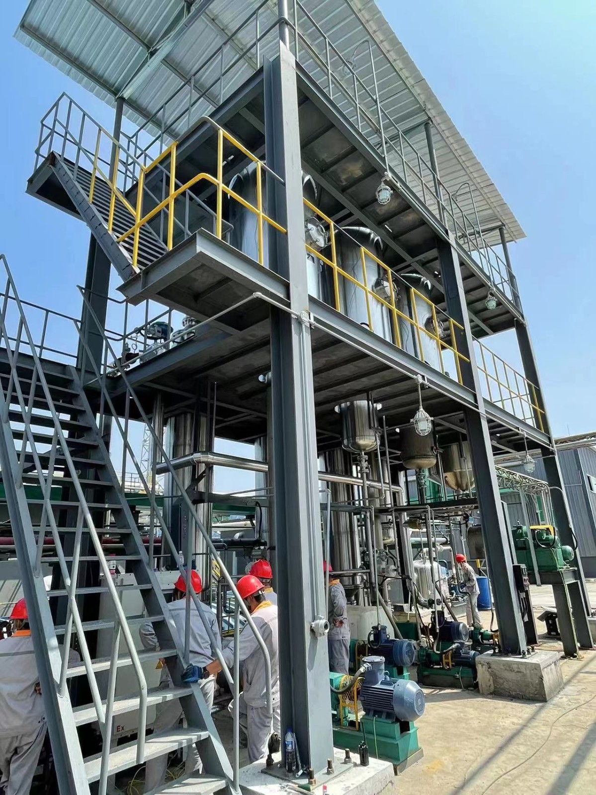 各效加熱器、各效分離器(結(jié)晶器)、冷凝器(混合式或表面式)、熱壓泵、各效強(qiáng)制循環(huán)泵、各效料液輸送泵、真空泵、冷凝水泵、操作平臺(tái)、電器控制柜、液位自控系統(tǒng)及閥門管路等。